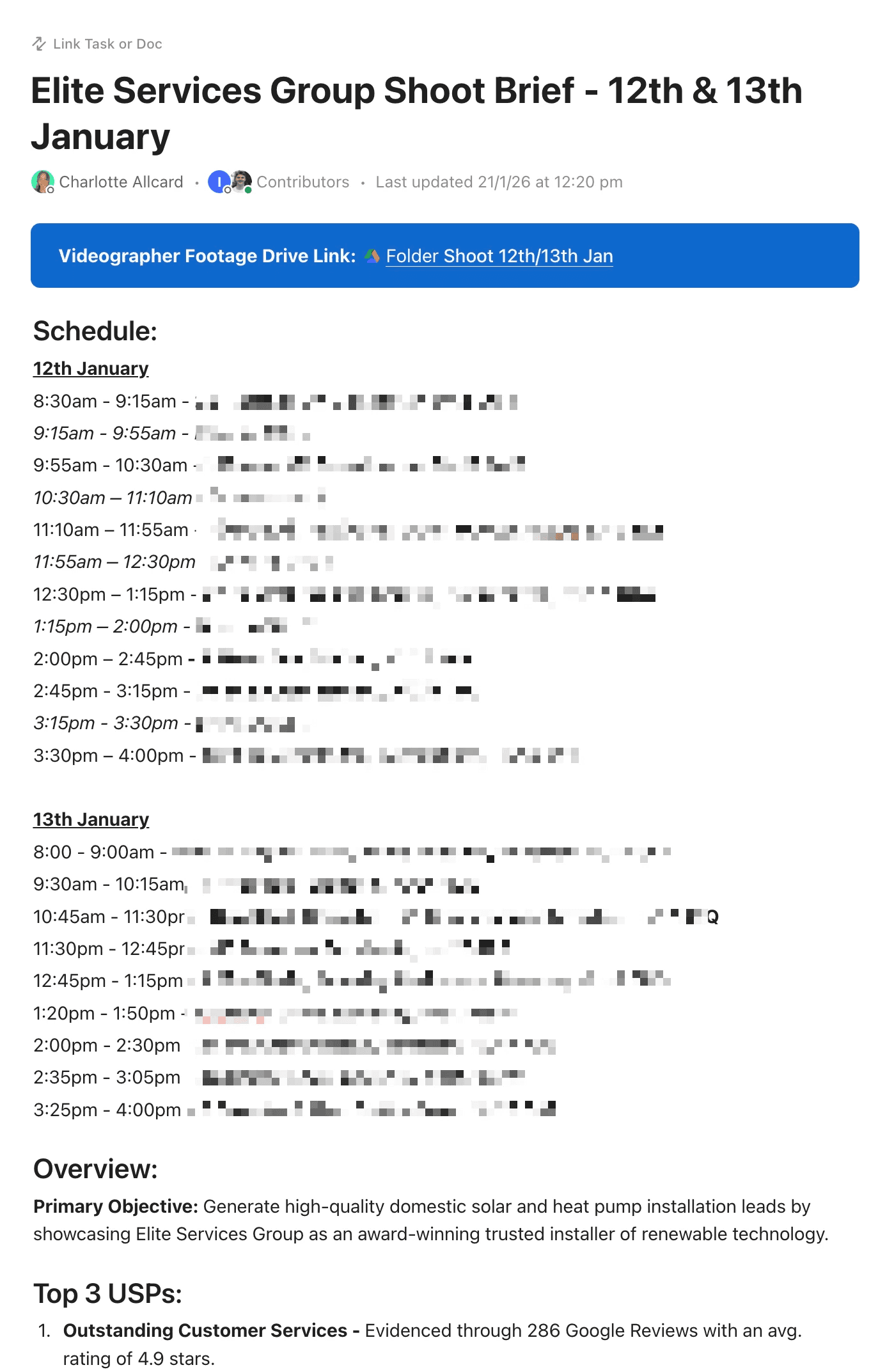 We are often in and out of a property within 45 minutes, so we can visit several sites to acquire a huge variety of content that can be deployed into the campaigns.